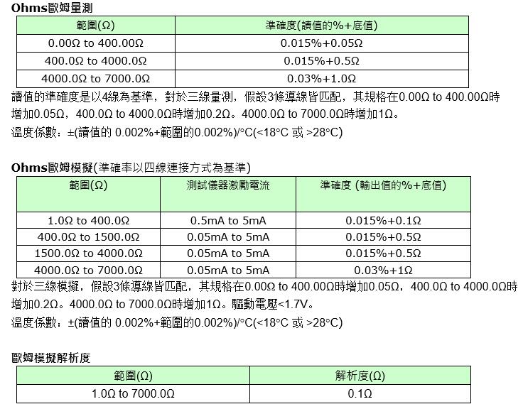 所有規(guī)格適用於在 5 分鐘暖機時間下。